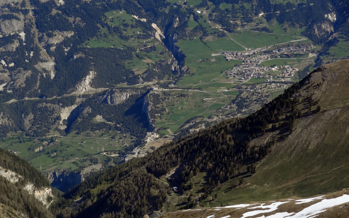 Après un premier tiers du couloir descendu en marche arrière, Franck enquille quelques virages sautés dans une neige déjà bien transfo.